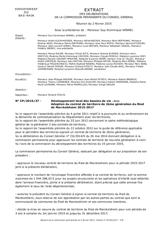 Adoption du contrat de territoire de 2ème génération du Ried de Marckolsheim 2015-2017