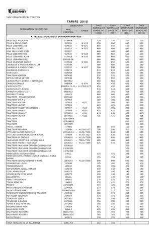 Tarifs 2015 des prestations assurées par le Parc départemental d'Erstein