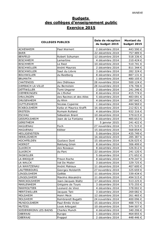 Il appartient au Département d’approuver les budgets des collèges d’enseignement publics. La proposition ci-après concerne le budget 2015.
