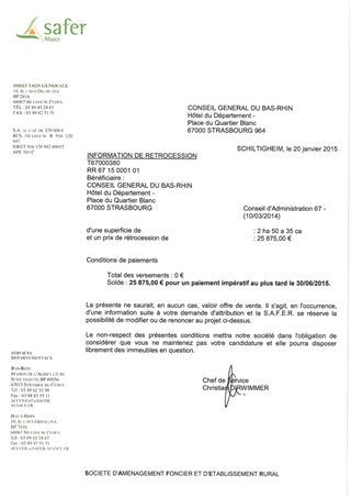 Mesures compensatoires liées à la suppression du PN6 à REICHSTETT - Acquisitions foncières