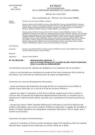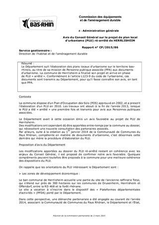 Avis du Conseil Général sur le projet de plan local d’urbanisme (PLU) ré-arrêté de HERRLISHEIM