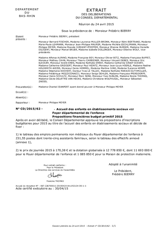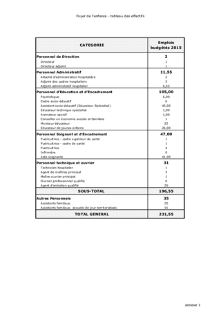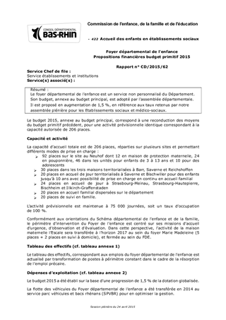 Foyer départemental de l'enfance Propositions financières budget primitif 2015