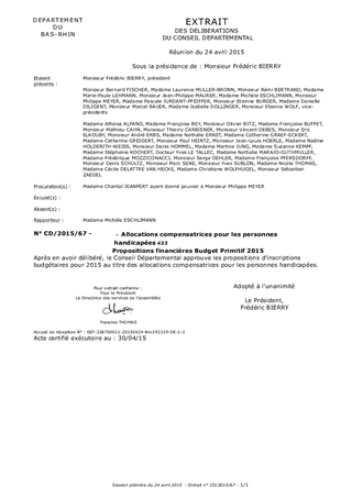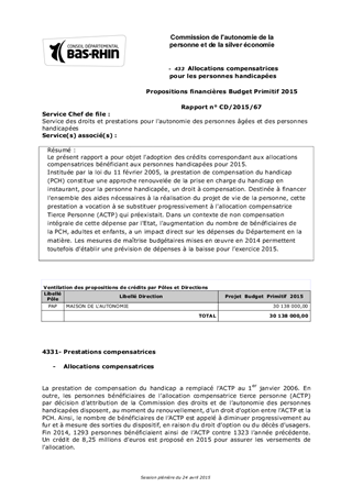 Le présent rapport a pour objet l'adoption des crédits correspondant aux allocations compensatrices bénéficiant aux personnes handicapées pour 2015. Instituée par la loi du 11 février 2005, la prestation de compensation du handicap (PCH) constitue une approche renouvelée de la prise en charge du handicap en instaurant, pour la personne handicapée, un droit à compensation. Destinée à financer l'ensemble des aides nécessaires à la réalisation du projet de vie de la personne, cette prestation a vocation à se substituer progressivement à l'allocation compensatrice Tierce Personne (ACTP) qui préexistait. Dans un contexte de non compensation intégrale de cette dépense par l'Etat, l'augmentation du nombre de bénéficiaires de la PCH, adultes et enfants, a un impact direct sur les dépenses du Département en la matière. Les mesures de maîtrise budgétaires mises en œuvre en 2014 permettent toutefois d’établir une prévision de dépenses à la baisse pour l’exercice 2015.