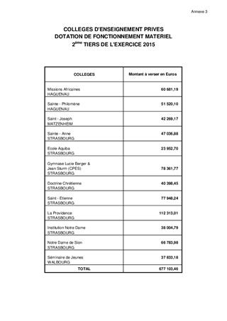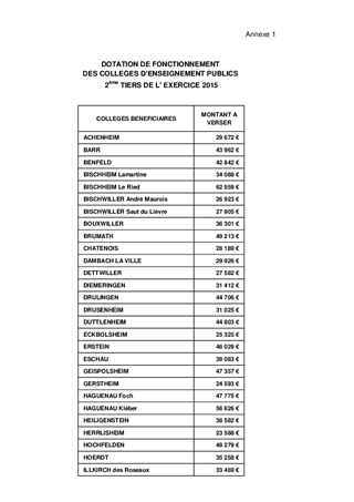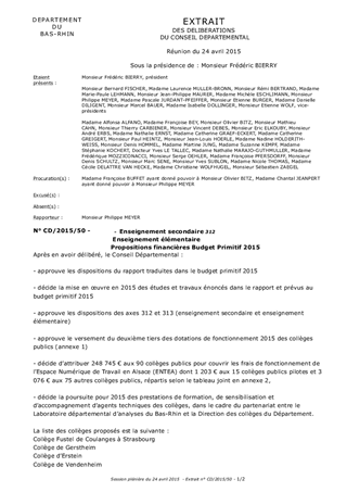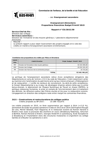 Enseignement élémentaire Propositions financières Budget Primitif 2015
