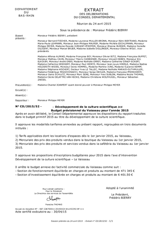 Le présent rapport a pour objet de soumettre à votre examen les différentes composantes des budgets du Vaisseau (général et annexe), établissement de culture scientifique exploité en régie, et la tarification de 2015 pour les droits d’entrée, les locations d’espaces, la boutique et la cafétéria. Il est proposé l’inscription de crédits à hauteur de 1 930 771,98€ ainsi que des recettes à hauteur de 1 436 000€ au budget primitif 2015.