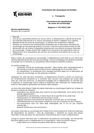 Lors de son assemblée plénière du 24 juin 2013, le Département a décidé de favoriser les mobilités alternatives à la voiture individuelle à travers l'adoption d'un schéma départemental des aires de covoiturage. Le schéma fixe notamment l'objectif d'utiliser au maximum les infrastructures existantes par la réservation de places de covoiturage sur des parkings publics ou privés. C'est ainsi que plusieurs sites ont été démarchés afin de mettre à disposition gratuitement une dizaine de places réservées au covoiturage. Chaque accord fait l'objet d'une convention de signalisation entre le Département et le propriétaire afin de fixer les conditions d'utilisation de la zone de covoiturage.