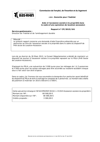 Le présent rapport concerne une demande d'aide financière présentée par un particulier au titre de l'accession sociale à la propriété dans le cadre du dispositif de Prêt social de Location-Accession.