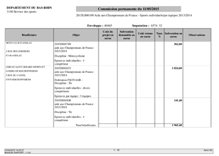 Aide à la pratique sportive compétitive amateur - Aide aux Championnats de France : résultats et déplacements