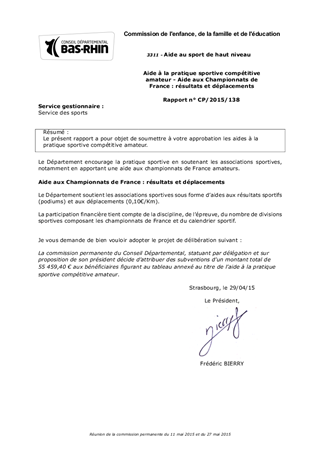 Le présent rapport a pour objet de soumettre à votre approbation les aides à la pratique sportive compétitive amateur.
