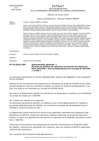 Le Département suit l’élaboration des Schémas de cohérence territoriale – SCoT sur le territoire bas-rhinois, au titre de sa mission de Personne publique associée (PPA) aux documents d’urbanisme. Après plus de deux ans de travaux, le SCoT de l’Alsace du Nord finalise actuellement son projet de révision et arrive en phase de SCoT « arrêté ». Conformément à l'article L 122-8 du code de l’urbanisme, ces documents sont transmis au Département, pour qu’il fasse connaître son avis.