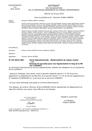 Echange de parcelles pour une régularisation le long de la RD 191 à URMATT