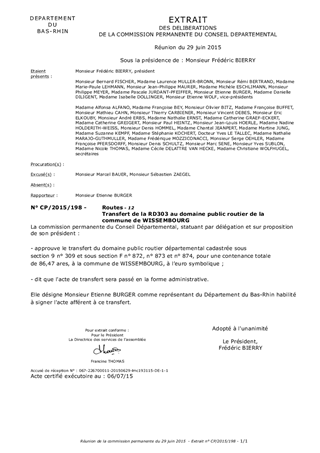 Transfert de la RD303 au domaine public routier de la commune de WISSEMBOURG