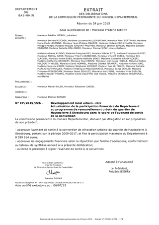 Actualisation de la participation financière du Département au programme de renouvellement urbain du quartier de Hautepierre à Strasbourg dans le cadre de l'avenant de sortie de la convention