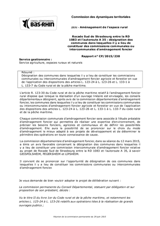 Rocade Sud de Strasbourg entre la RD 1083 et l’autoroute A 35 : désignation des communes dans lesquelles il y a lieu de constituer des commissions communales ou intercommunales d'aménagement foncier