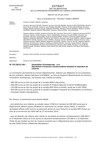 Attribution d'avances remboursables Alsabail et abandon de créance