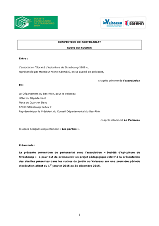 Convention de partenariat avec la société d'apiculture de Strasbourg-1869 -