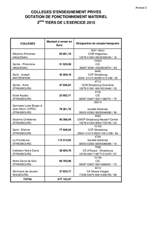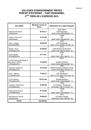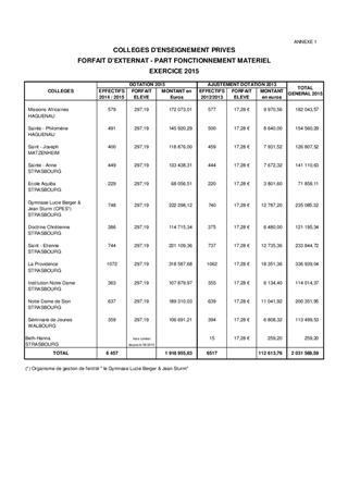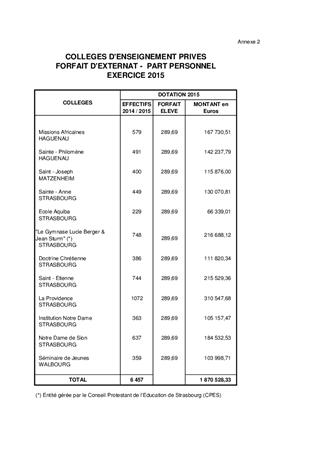 Dotations de fonctionnement 2015 des collèges privés sous contrat d'association
