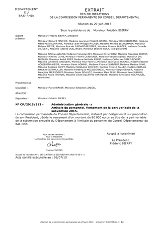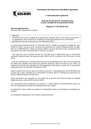 Versement de la part variable de la subvention annuelle 2015 à l'Amicale du personnel, en application de la convention d'objectifs 2015/2018 approuvée en commission permanente lors de la réunion du 1er décembre 2014.