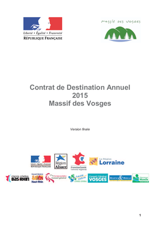 Politique en faveur de la montagne. Contrat de destination touristique du Massif des Vosges. Programme d'actions 2015