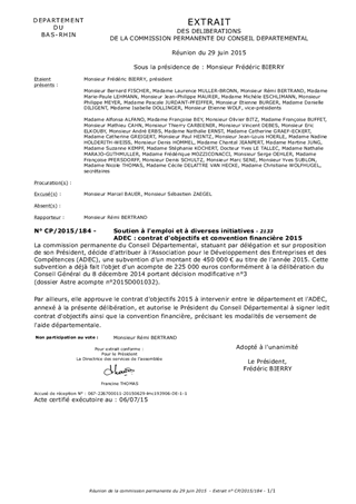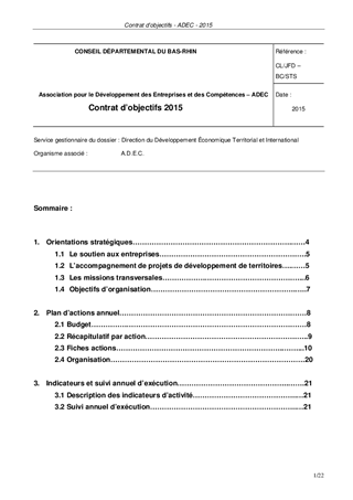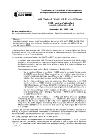Le présent rapport a pour objet l'approbation du contrat d'objectifs 2015 de l'ADEC et de l'attribution d'une subvention de fonctionnement d'un montant de 450 000 € au titre de l'année 2015.