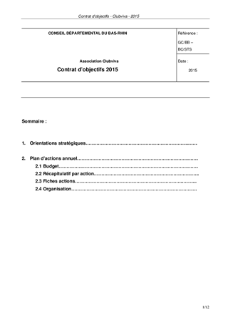 Association Clubviva : contrat d'objectifs et convention financière 2015