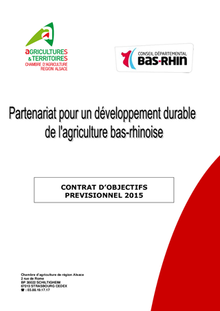 La politique agricole du Conseil Départemental du Bas-Rhin, confortée par le partenariat de longue date avec la Chambre d'Agriculture, vise à promouvoir une agriculture bas-rhinoise compétitive et durable. Le contrat d'objectifs 2015 a été élaboré en se conformant à la convention cadre qui lie le Conseil Départemental à la profession agricole.