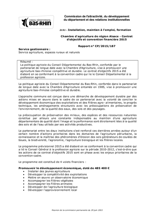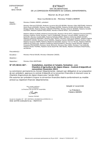 Chambre d'agriculture de région Alsace - Contrat d'objectifs et convention financière 2015