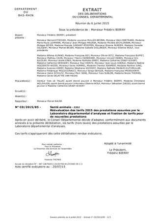 Réévaluation des tarifs 2015 des prestations assurées par le Laboratoire départemental d'analyses et fixation de tarifs pour de nouvelles prestations