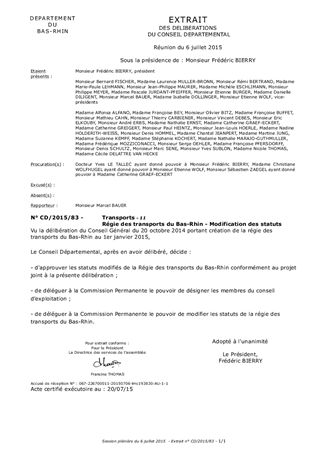 Régie des transports du Bas-Rhin - Modification des statuts