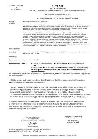 Le présent rapport vise à proposer la désignation de certaines collectivités comme maître d’ouvrage unique pour l’aménagement de routes départementales en agglomération, chargées à ce titre d’exercer les attributions relevant de la maîtrise d’ouvrage pour les chaussées départementales concernées, et à autoriser le président à signer les conventions à intervenir entre ces collectivités et le Département
