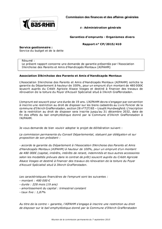 Le présent rapport concerne une demande de garantie présentée par l’Association Illkirchoise des Parents et Amis d’Handicapés Mentaux (AIPAHM)