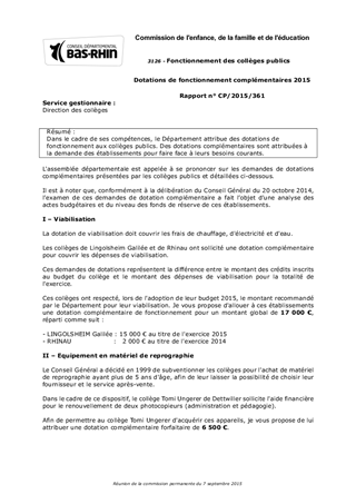 Dotations de fonctionnement complémentaires 2015