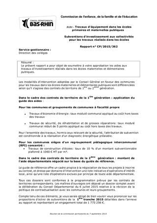Le présent rapport a pour objet de soumettre à votre approbation les aides aux travaux d'investissement réalisés dans les écoles maternelles et élémentaires publiques.