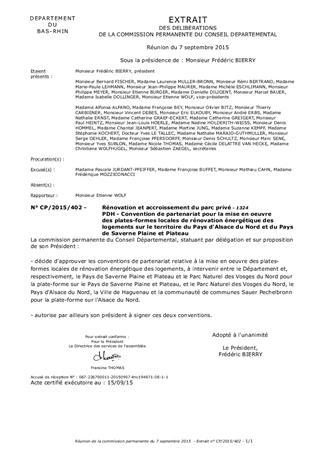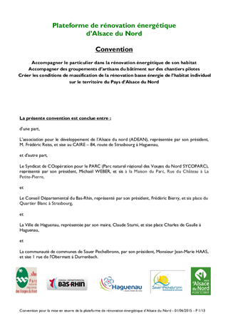 PDH - Convention de partenariat pour la mise en oeuvre des plates-formes locales de rénovation énergétique des logements sur le territoire du Pays d'Alsace du Nord et du Pays de Saverne Plaine et Plateau