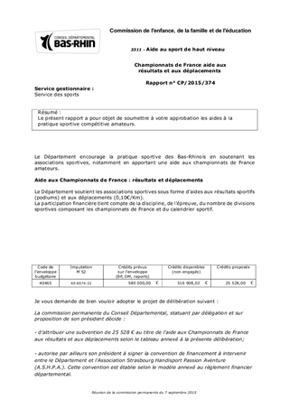 Le présent rapport a pour objet de soumettre à votre approbation les aides à la pratique sportive compétitive amateurs.