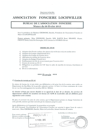 Le présent rapport a pour objet de soumettre à votre approbation les modalités d’acquisition d’une parcelle de terrain située à LOCHWILLER, appartenant à l’association foncière de la commune, afin de régulariser la situation foncière suite à l’aménagement du carrefour RD 668/RD 68.