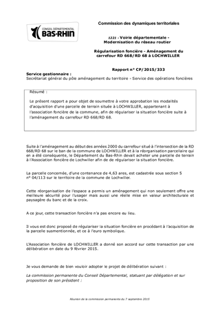 Régularisation foncière - Aménagement du carrefour RD 668/RD 68 à LOCHWILLER