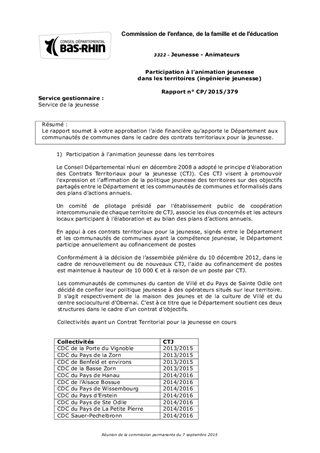 Le rapport soumet à votre approbation l'aide financière qu'apporte le Département aux communautés de communes dans le cadre des contrats territoriaux pour la jeunesse.