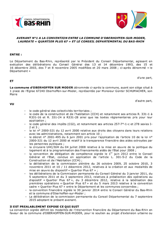 PDH-Avenant n°1 à la convention financière du Quartier Plus 67 de la commune d’Oberhoffen-sur-Moder