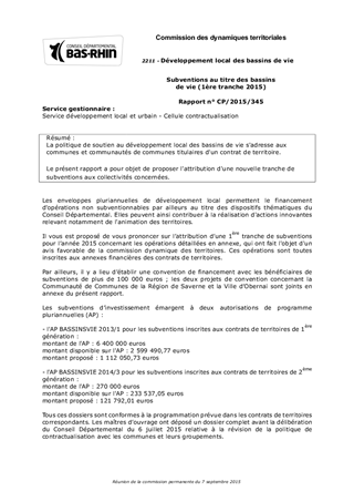 La politique de soutien au développement local des bassins de vie s'adresse aux communes et communautés de communes titulaires d'un contrat de territoire. Le présent rapport a pour objet de proposer l'attribution d'une nouvelle tranche de subventions aux collectivités concernées.