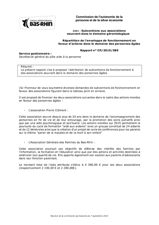Le présent rapport vise à proposer l’attribution de subventions de fonctionnement à des associations œuvrant dans le domaine des personnes âgées