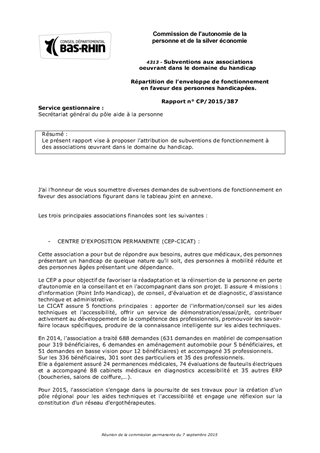 Le présent rapport vise à proposer l’attribution de subventions de fonctionnement à des associations œuvrant dans le domaine du handicap.