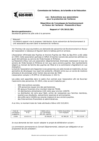 Le présent rapport vise à proposer l’attribution d’une subvention de fonctionnement à une association œuvrant dans le domaine de l’enfance.