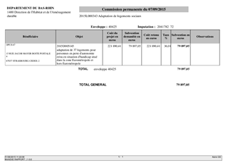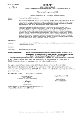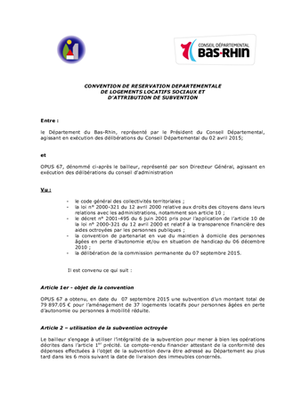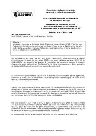 Le rapport concerne la demande d'aide financière présentée par OPUS 67 concernant l'adaptation de logements sociaux au handicap et/ou à la perte d'autonomie, dans le cadre de la convention relative à l'adaptation des logements à la perte d'autonomie entre le Département et OPUS 67.