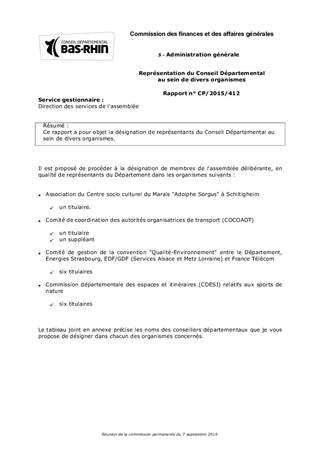 Ce rapport a pour objet la désignation de représentants du Conseil Départemental au sein de divers organismes.