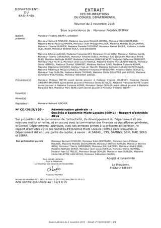 Le présent rapport a pour objet de soumettre à votre approbation le rapport d'activités 2014 des Sociétés d'Economie Mixte Locales (SEML) dans lesquelles le Département détient une partie du capital.