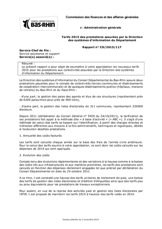 Le présent rapport a pour objet de soumettre à votre approbation les nouveaux tarifs 2015 pour les prestations aux collectivités assurées par la Direction des systèmes d'information du Département.