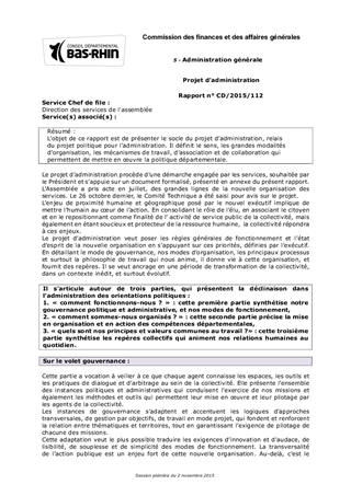 L’objet de ce rapport est de présenter le socle du projet d’administration, relais du projet politique pour l’administration. Il définit le sens, les grandes modalités d’organisation, les mécanismes de travail, d’association et de collaboration qui permettent de mettre en œuvre la politique départementale.