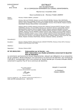 PDH- Subvention aux études préalables concernant le Quartier Plus de Salenthal