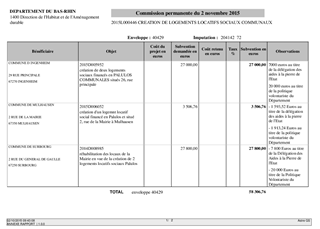 Le présent rapport concerne les demandes d’aide financière départementale formulées par la commune de SURBOURG, la commune d’INGENHEIM et la commune de MULHAUSEN concernant la création de logements locatifs sociaux communaux dans le cadre de la PALULOS communale.
